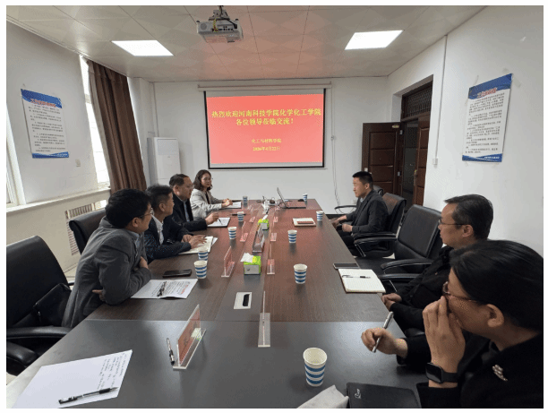 的整体概况、办学特色与发展规划。杨理围绕学院发展历程、学科建设成效、师资队伍结构、实验室建设水平及人才培养模式等内容进行了全面阐述。随后,双方聚焦教学课题申报技巧、重点学科建设路径、研究生联合培育机制、教科研日常管理、实验室安全防控及危险化学品规范处置等方面共同关注的重点难点问题,深入交流、热烈研讨,分享经验、碰撞思想、凝聚共识。